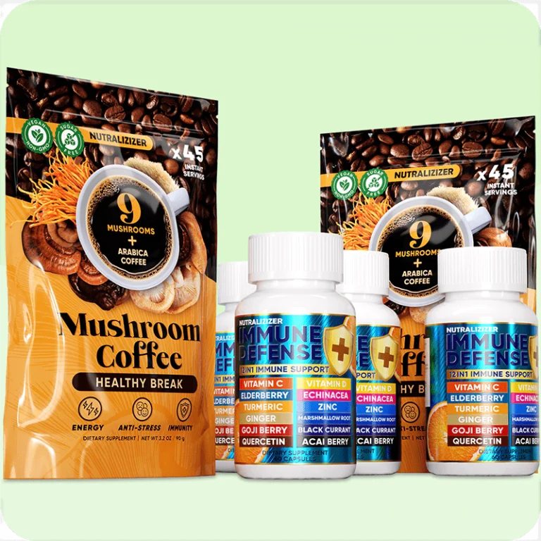 - Energy & Mental Clarity: Low-caffeine mushroom coffee enhances focus, memory, and digestion, while vitamins with ginger and turmeric help balance energy levels and keep you active.